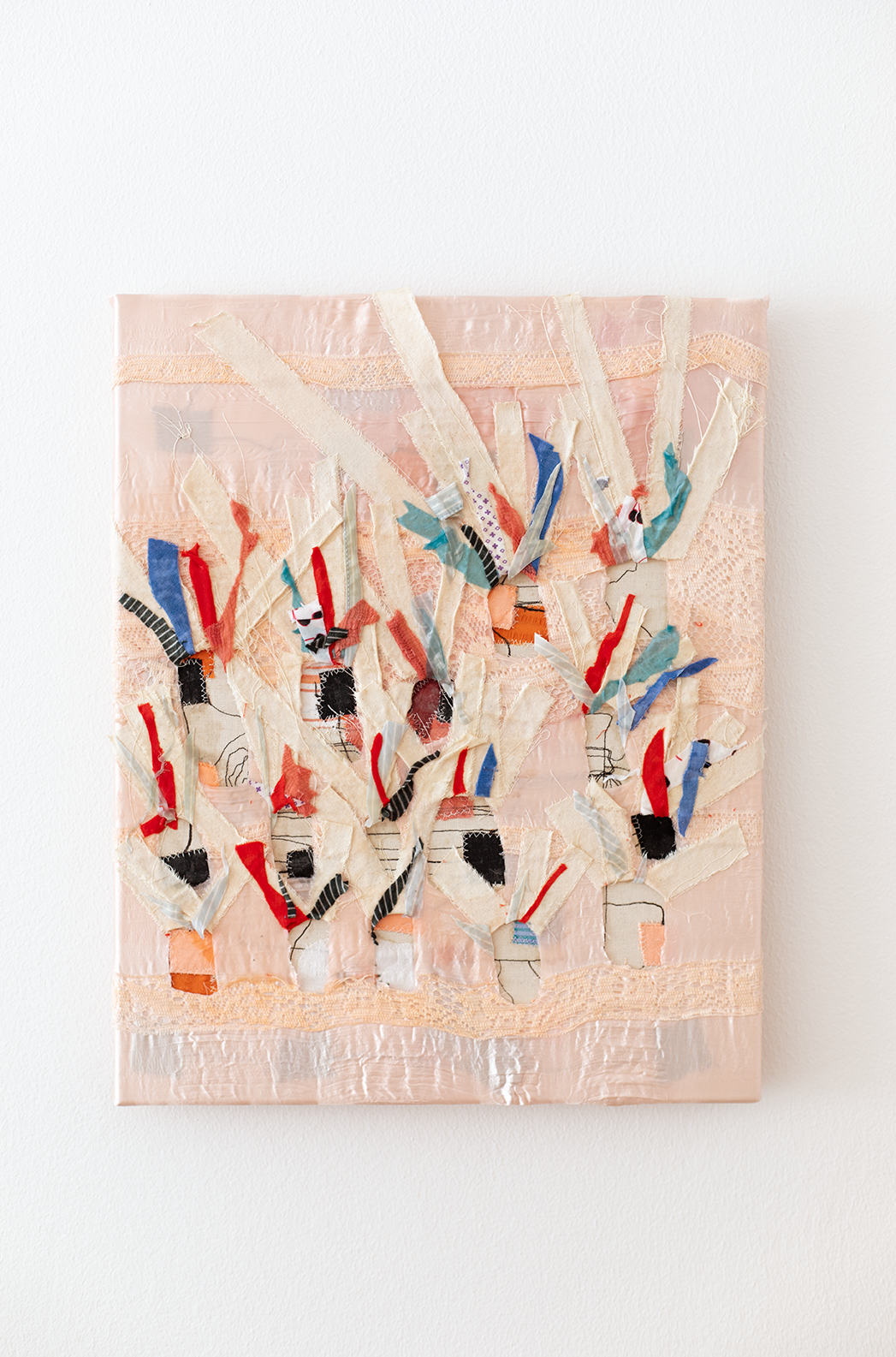 relaxed fabric mind is a series of collaged drawings on paper. The title refers to both a mental and physical state, as well as treating paper as if it were fabric. relaxed fabric mind is a poetic state of pause, of taking a deep breath and drawing strength from an organism. Clear structures without severity, with a playful poetry, take over the organism after SOMETHING has disrupted it. Something that is too big to be fit into a grid was unceremoniously placed into small boxes and overflowing drawers. relaxed fabric mind is the state in which the SOMETHING finds its place, no longer scattered loosely and threatening to swell. The series consists of old, discarded drawings that were sorted out as “not good enough” and are recontextualized through reassembly and the search for the aesthetics of idiosyncrasy (the peculiarity of an organism).